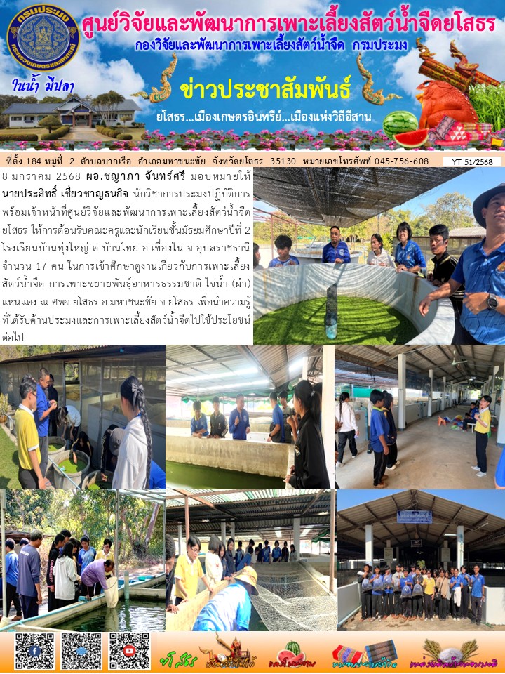 แก้ไขโดย : [ศูนย์วิจัยและพัฒนาการเพาะเลี้ยงสัตว์น้ำจืดยโสธร] วันที่ 9 ม.ค. 2568 (10:51 น.)
