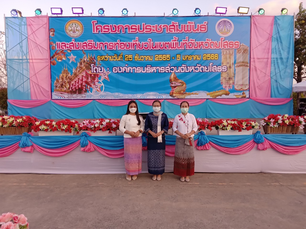 วันที่ 28 ธ.ค. 2565 (13:16 น.)วันอังคารที่ 27 ธันวาคม 2565 เวลา 18.00 น.นายไกร เอี่ยมจุฬา รองผู้ว่าราชการจังหวัดยโสธร เป็นประธานพิธีเปิดโครงการประชาสัมพันธ์ส่งเสริมการท่องเที่ยวในเขตพื้นที่จังหวัดยโสธร ประจำปีงบประมาณ พ.ศ.2565 ซึ่งองค์การบริหารส่วนจังหวัดยโสธรกำหนดจัดขึ้นระหว่างวันที่ 25 ธันวาคม 2565 - 4 มกราคม 2566 โดยได้จำลองเอาแหล่งท่องเที่ยว ประเพณี วัฒนธรรม และภูมิปัญญาท้องถิ่นในเขตพื้นที่จังหวัดยโสธร มาประชาสัมพันธ์ในรูปแบบนิทรรศการแสง สี เสียง ให้เป็นที่รู้จักอย่างแพร่หลายของประชาชนทั่วไป นักท่องเที่ยวทั้งชาวไทยและต่างประเทศ โดยมี และมีนายกองค์การบริหารส่วนจังหวัด หัวหน้าส่วนราชการ นายอำเภอ และประชาชน เข้าร่วมงาน ณ วิมานพญาแถน ตำบลในเมือง อำเภอเมืองยโสธร จังหวัดยโสธร