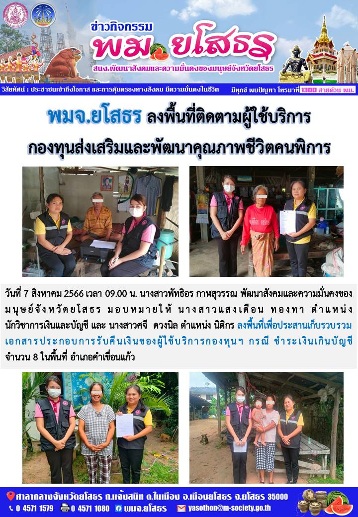 พมจ.ยโสธร ลงพื้นที่ติดตามผู้ใช้บริการกองทุนส่งเสริมและพัฒนาคุณภาพชีวิตคนพิการ (7 สิงหาคม 2566)