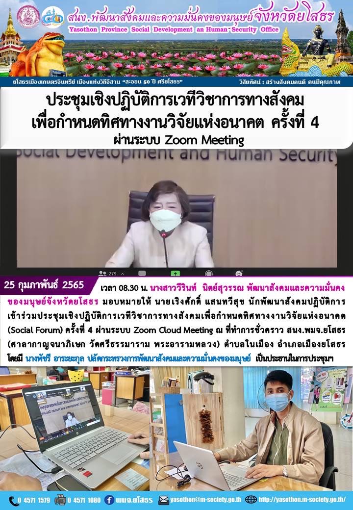 ประชุมเชิงปฏิบัติการเวทีวิชาการทางสังคมเพื่อกำหนดทิศทางงานวิจัยแห่งอนาคต (Social Forum) ครั้งที่ 4 (25 กุมภาพันธ์ 2565)
