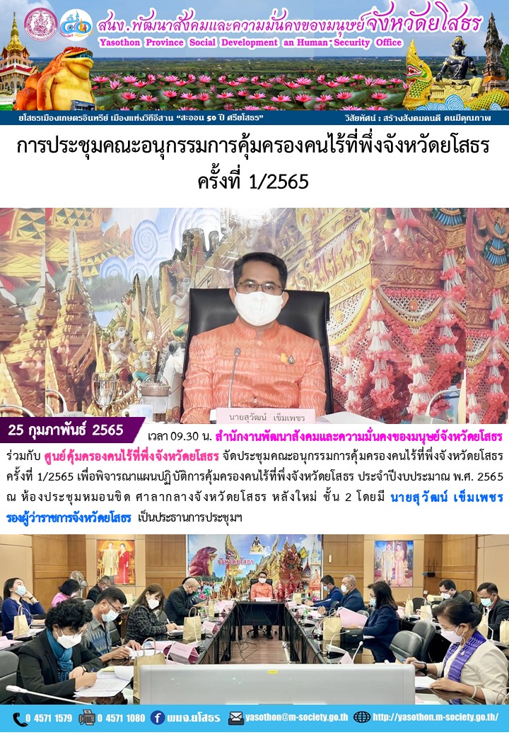 การประชุมคณะอนุกรรมการคุ้มครองคนไร้ที่พึ่งจังหวัดยโสธร ครั้งที่ 1/2565 (25 กุมภาพันธ์ 2565)