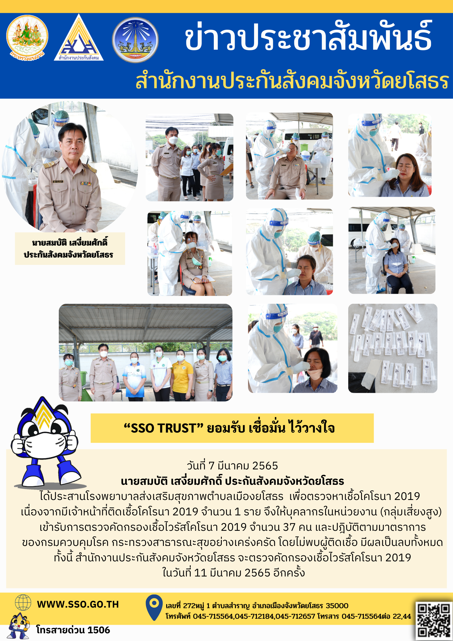 ทั้งนี้ สำนักงานประกันสังคมจังหวัดยโสธร จะตรวจคัดกรองเชื้อไวรัสโคโรนา 2019