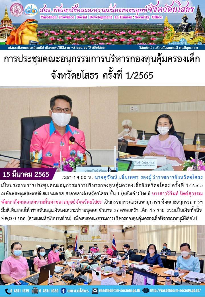 การประชุมคณะอนุกรรมการบริหารกองทุนคุ้มครองเด็กจังหวัดยโสธร ครั้งที่ 1/2565 (15 มีนาคม 2565)