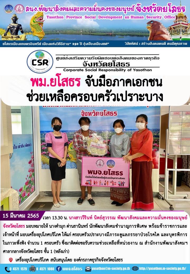 พม.ยโสธร จับมือภาคเอกชนช่วยเหลือครอบครัวเปราะบาง (15 มีนาคม 2565)