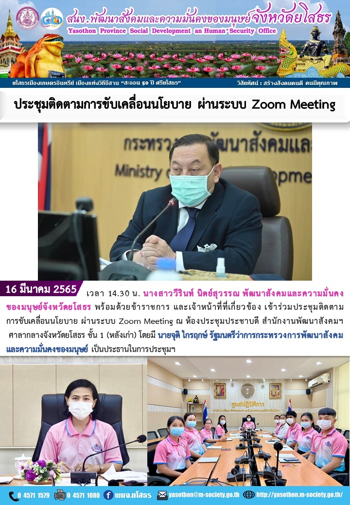 ประชุมติดตามการขับเคลื่อนนโยบาย ผ่านระบบ Zoom Meeting (16 มีนาคม 2565)