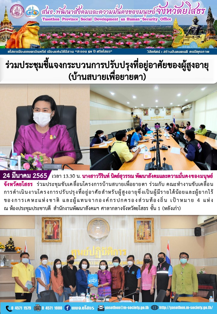 ร่วมประชุมชี้แจงกระบวนการปรับปรุงที่อยู่อาศัยของผู้สูงอายุ (บ้านสบายเพื่อยาตา) (24 มีนาคม 2565)