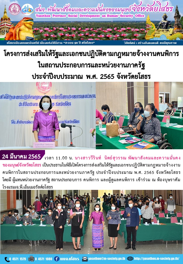 โครงการส่งเสริมให้รัฐและเอกชนปฏิบัติตามกฎหมายจ้างงานคนพิการในสถานประกอบการและหน่วยงานภาครัฐ ประจำปีงบประมาณ พ.ศ. 2565 จังหวัดยโสธร (24 มีนาคม 2565)