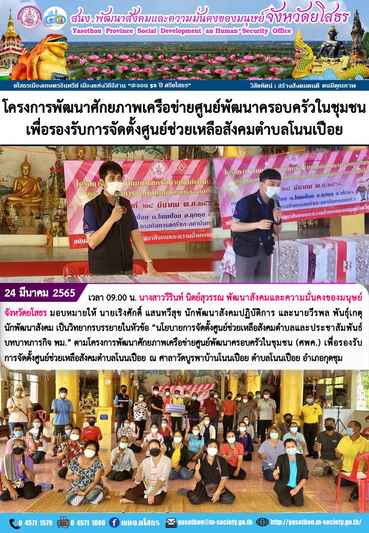 ผู้โพสต์ : [สำนักงานพัฒนาสังคมและความมั่นคงของมนุษย์จังหวัดยโสธร] ทั่วไป