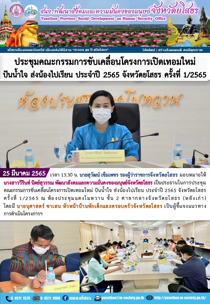ประชุมคณะกรรมการขับเคลื่อนโครงการเปิดเทอมใหม่ ปันน้ำใจ ส่งน้องไปเรียน ประจำปี 2565 จังหวัดยโสธร ครั้งที่ 1/2565 (25 มีนาคม 2565)
