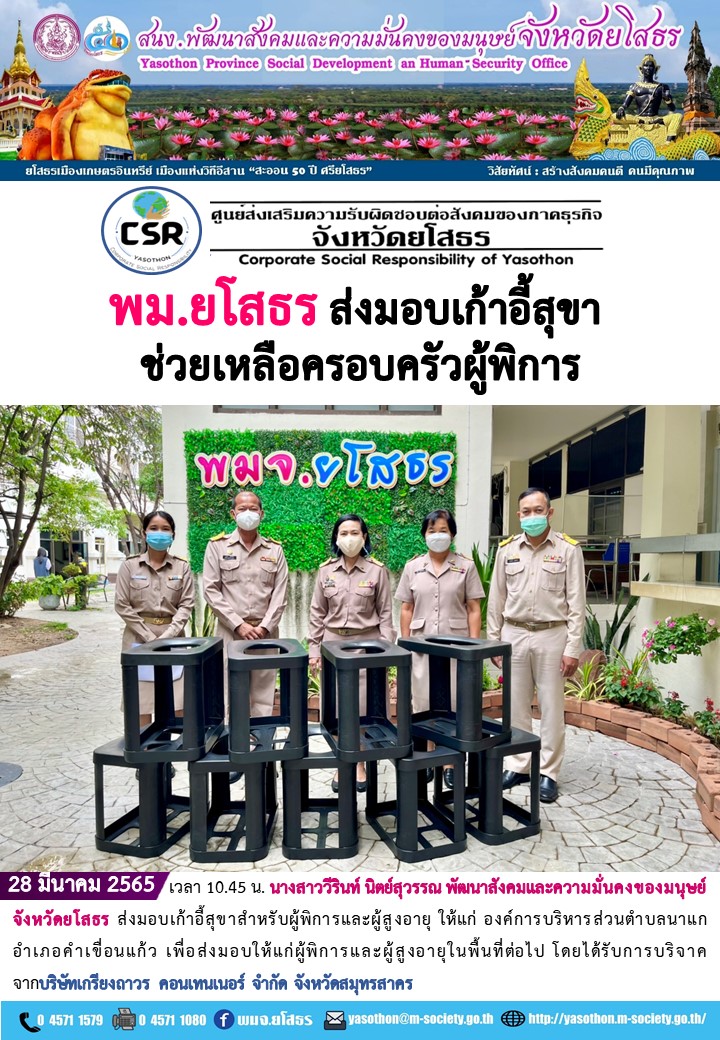 พม.ยโสธร ส่งมอบเก้าอี้สุขาช่วยเหลือครอบครัวผู้พิการ องค์การบริหารส่วนตําบลนาแก อําเภอคำเขื่อนแก้ว (28 มีนาคม 2565)
