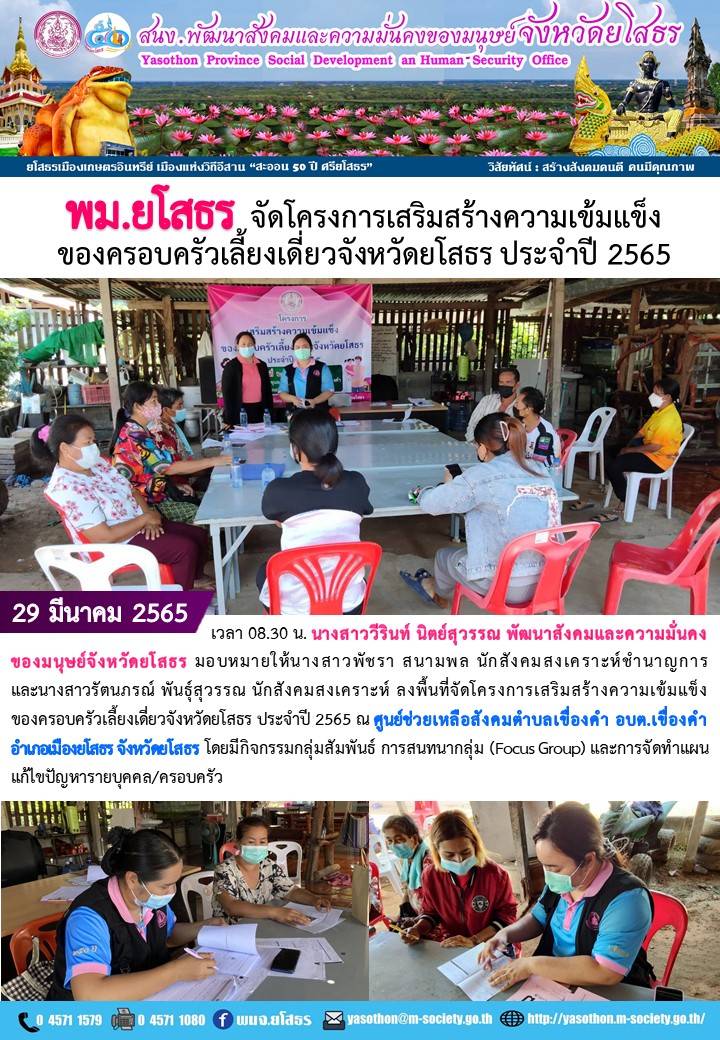 พม.ยโสธร จัดโครงการเสริมสร้างความเข้มแข็งของครอบครัวเลี้ยงเดี่ยวจังหวัดยโสธร ประจำปี 2565 (29 มีนาคม 2565)