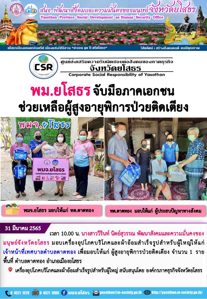 พม.ยโสธร จับมือภาคเอกชนช่วยเหลือผู้สุงอายุพิการป่วยติดเตียง (31 มีนาคม 2565)