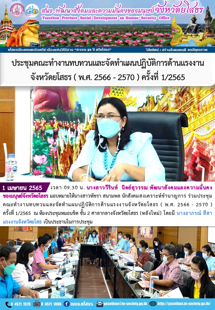 ประชุมคณะทำงานทบทวนและจัดทำแผนปฏิบัติการด้านแรงงานจังหวัดยโสธร (พ.ศ. 2566-2570) ครั้งที่ 1/2565 (1 เมษายน 2565)