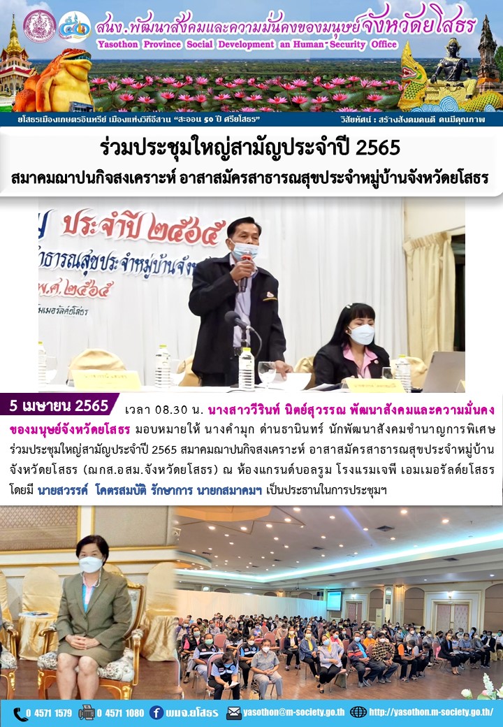 ร่วมประชุมใหญ่สามัญประจำปี 2565 สมาคมฌาปนกิจสงเคราะห์ อาสาสมัครสาธารณสุขประจำหมู่บ้านจังหวัดยโสธร (5 เมษายน 2565)