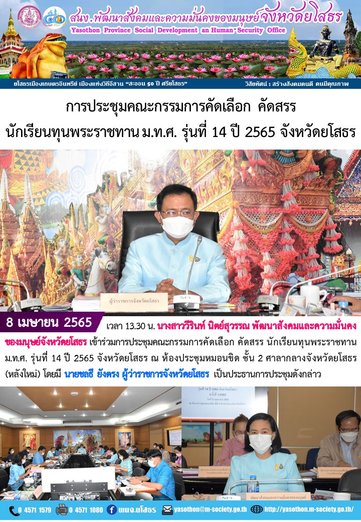 การประชุมคณะกรรมการคัดเลือก คัดสรร นักเรียนทุนพระราชทาน ม.ท.ศ. รุ่นที่ 14 ปี 2565 จังหวัดยโสธร (8 เมษายน 2565)