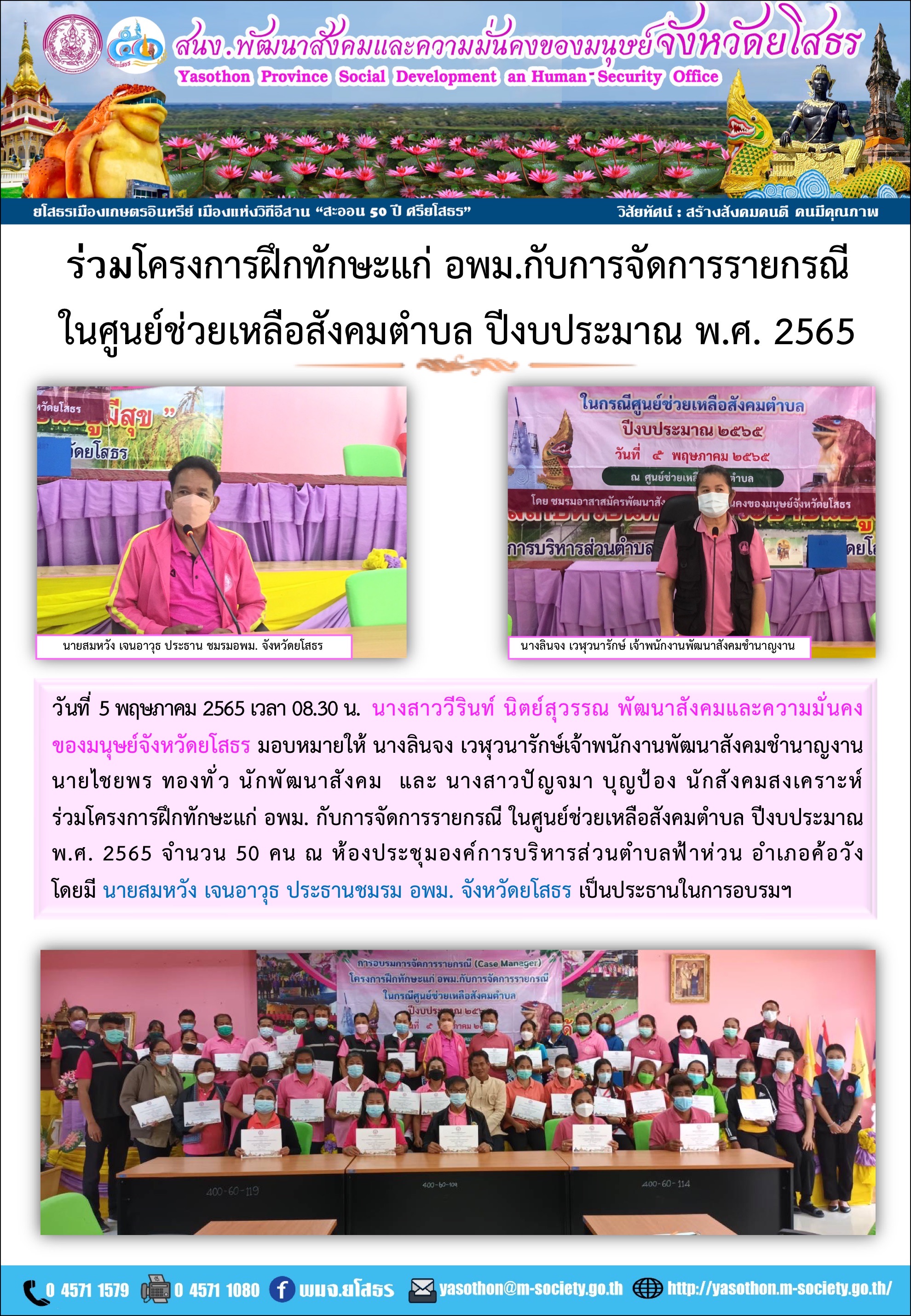ร่วมโครงการฝึกทักษะแก่ อพม.กับการจัดการรายกรณี ในศูนย์ช่วยเหลือสังคมตำบล ปีงบประมาณ พ.ศ. 2565 (5 พฤษภาคม 2565)