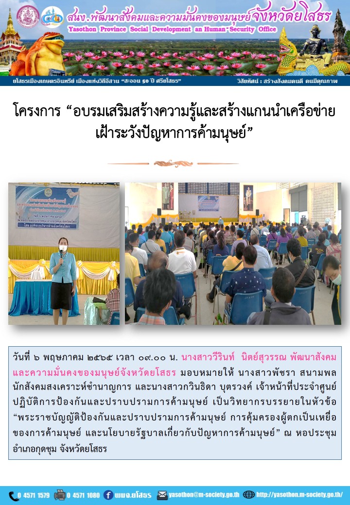 โครงการอบรมเสริมสร้างความรู้และสร้างแกนนำเครือข่ายเฝ้าระวังปัญหาการค้ามนุษย์ (6 พฤษภาคม 2565)