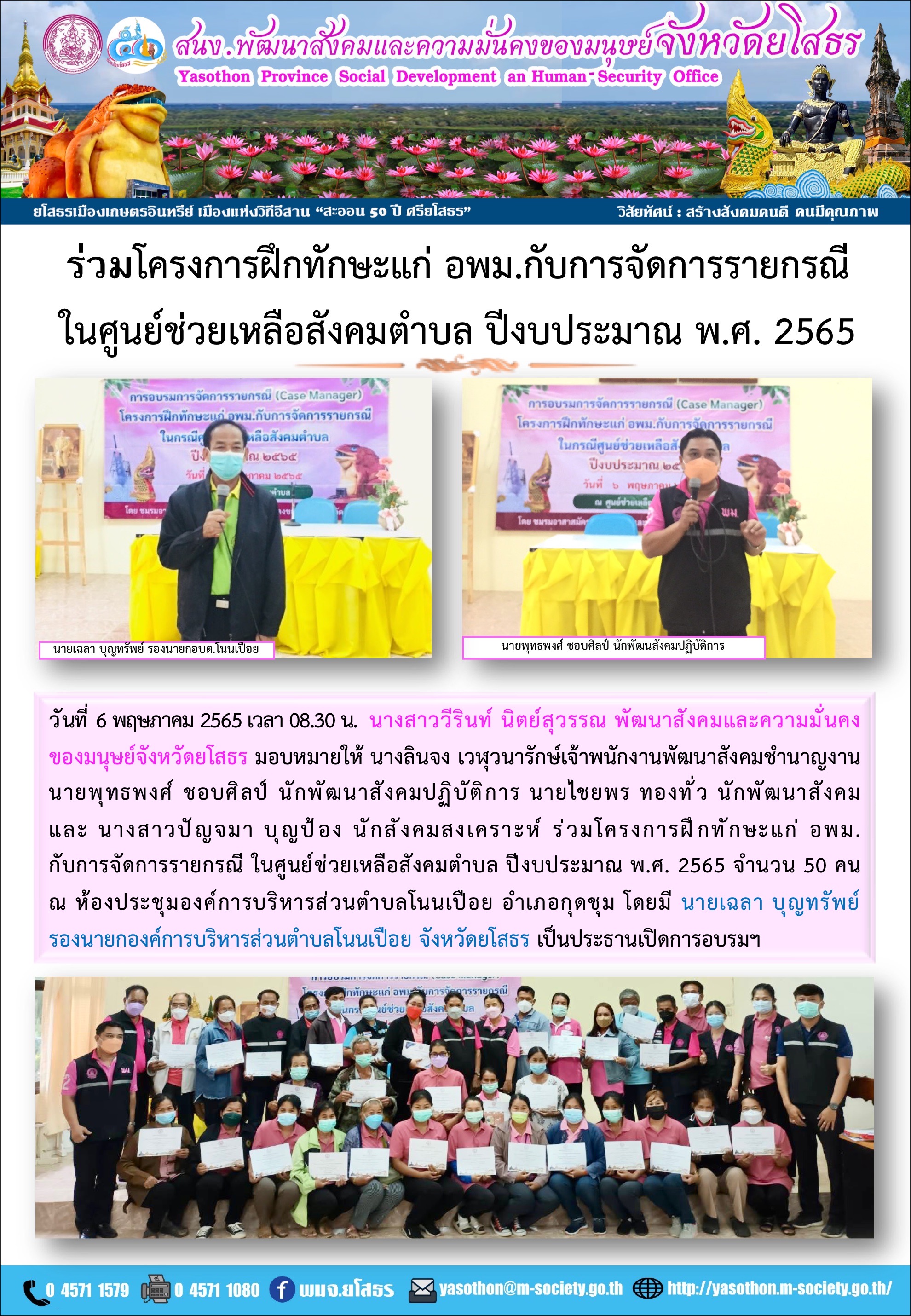 ร่วมโครงการฝึกทักษะแก่ อพม.กับการจัดการรายกรณี ในศูนย์ช่วยเหลือสังคมตำบล ปีงบประมาณ พ.ศ. 2565 (6 พฤษภาคม 2565)