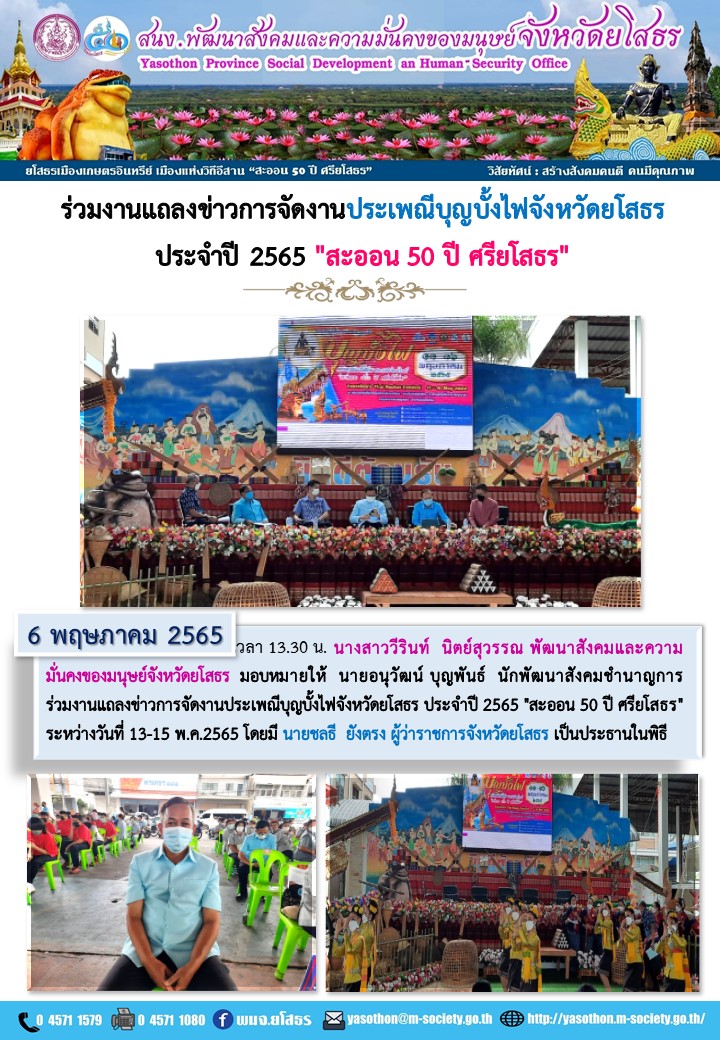 ร่วมงานแถลงข่าวการจัดงานประเพณีบุญบั้งไฟจังหวัดยโสธร ประจำปี 2565 "สะออน 50 ปี ศรียโสธร" (6 พฤษภาคม 2565)