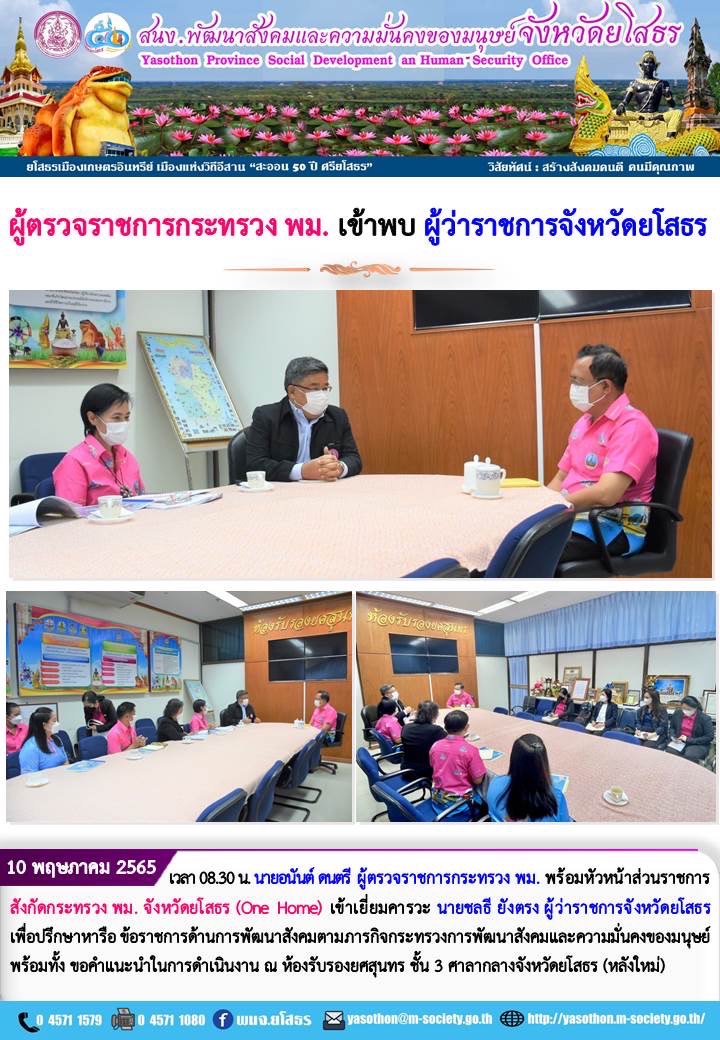 ผู้ตรวจราชการกระทรวง พม. เข้าพบ ผู้ว่าราชการจังหวัดยโสธร (10 พฤษภาคม 2565)