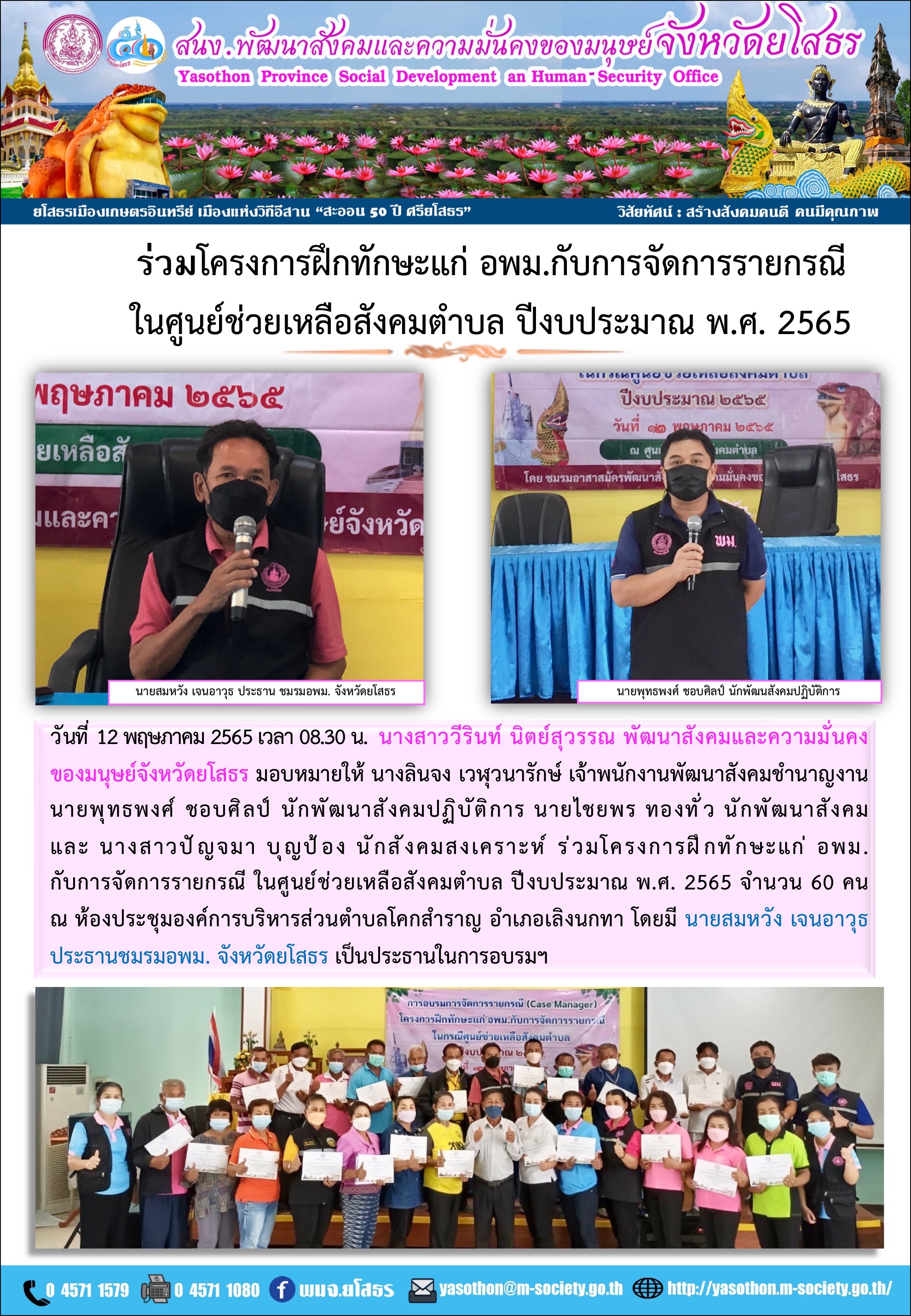 ร่วมโครงการฝึกทักษะแก่ อพม.กับการจัดการรายกรณี ในศูนย์ช่วยเหลือสังคมตำบล ปีงบประมาณ พ.ศ. 2565 (12 พฤษภาคม 2565)