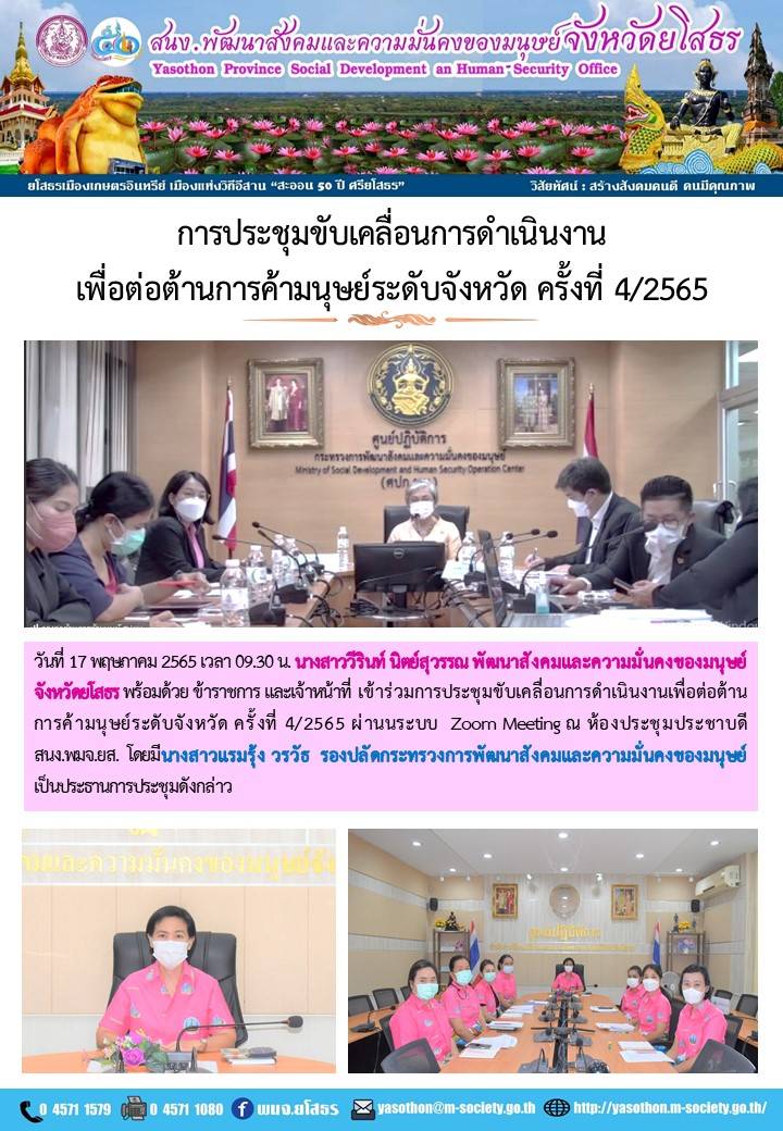 ประชุมขับเคลื่อนการดำเนินงานเพื่อต่อต้านการค้ามนุษย์ระดับจังหวัด ครั้งที่ 4/2565 (17 พฤษภาคม 2565)