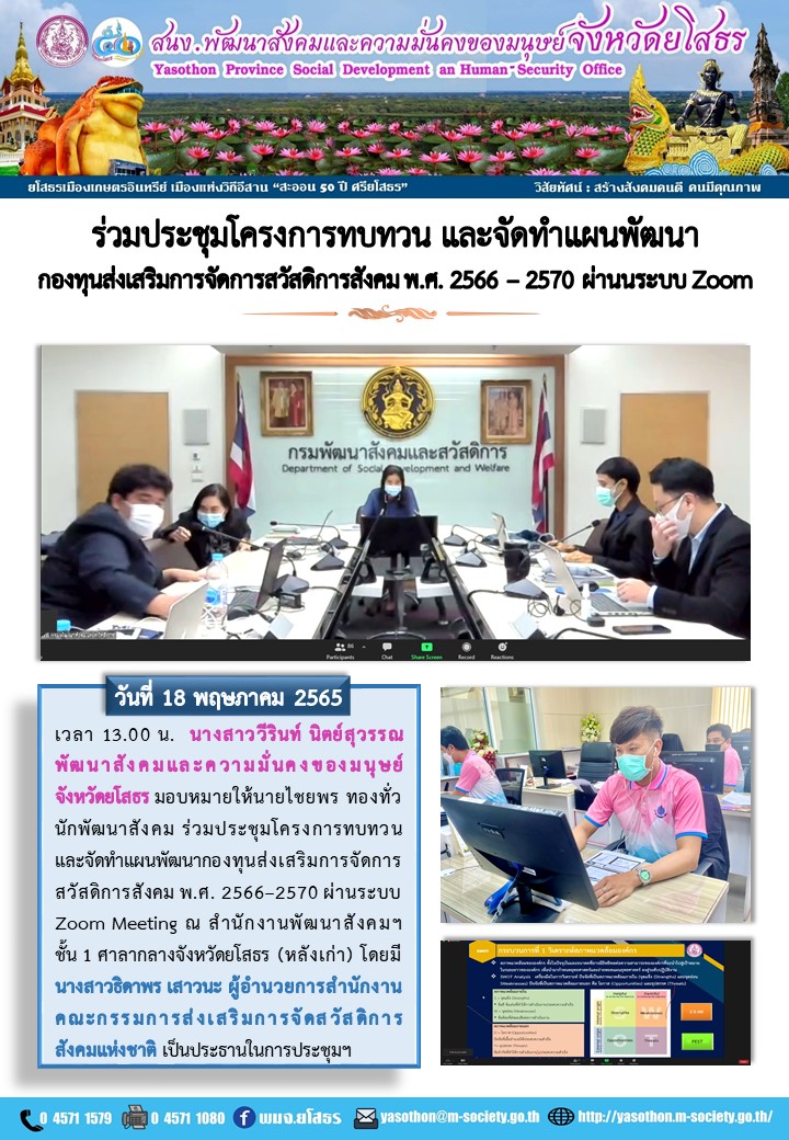 ร่วมประชุมโครงการทบทวนและจัดทำแผนพัฒนากองทุนส่งเสริมการจัดการสวัสดิการสังคม พ.ศ. 2566–2570 (18 พฤษภาคม 2565)