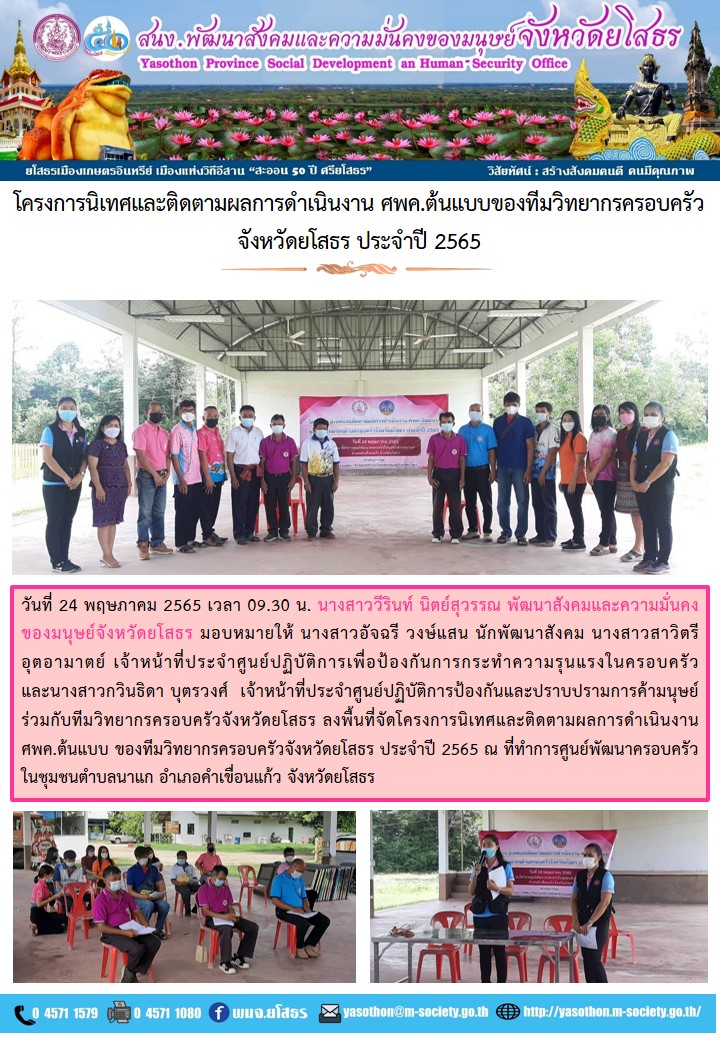 โครงการนิเทศและติดตามผลการดำเนินงาน ศพค.ต้นแบบของทีมวิทยากรครอบครัวจังหวัดยโสธร ประจำปี 2565 (24 พฤษภาคม 2565)
