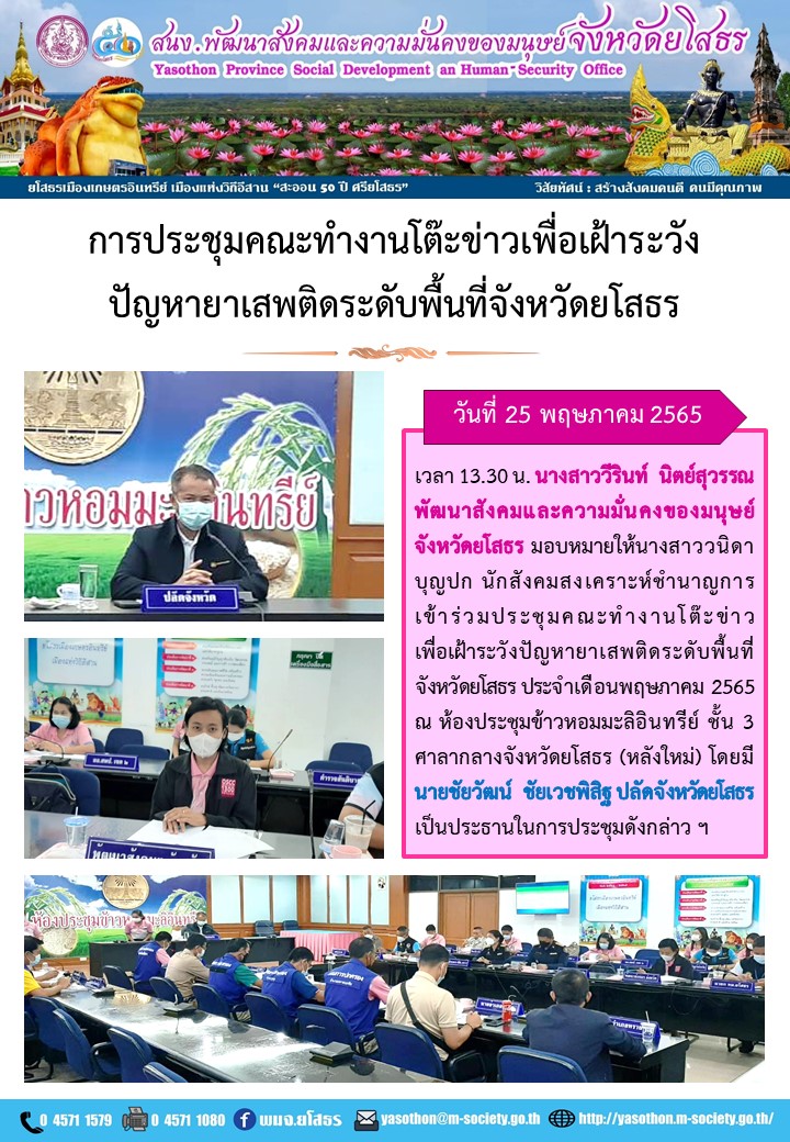 ประชุมคณะทำงานโต๊ะข่าวเพื่อเฝ้าระวังปัญหายาเสพติดระดับพื้นที่จังหวัดยโสธร (25 พฤษภาคม 2565)
