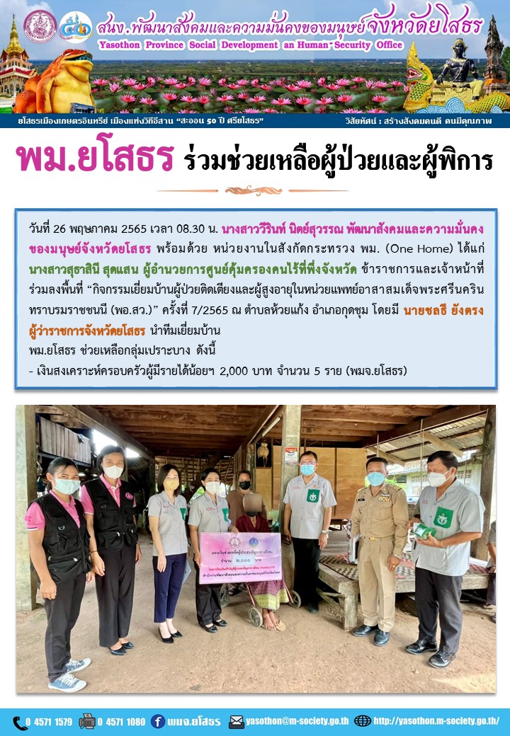 พมจ.ยโสธร ร่วมช่วยเหลือผู้ป่วยและผู้พิการ (26 พฤษภาคม 2565)