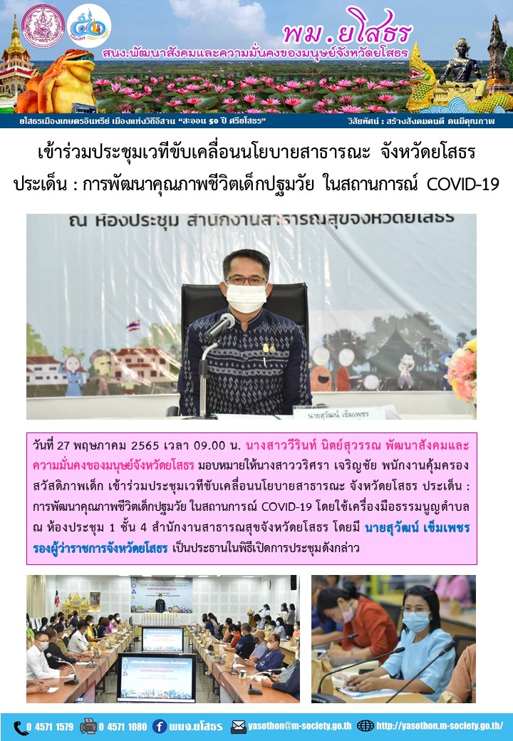 ประชุมเวทีขับเคลื่อนนโยบายสาธารณะ จังหวัดยโสธร ประเด็น การพัฒนาคุณภาพชีวิตเด็กปฐมวัย ในสถานการณ์ COVID-19 (27 พฤษภาคม 2565)