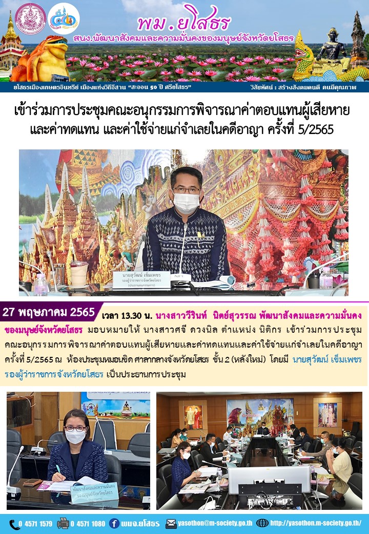 เข้าร่วมการประชุมคณะอนุกรรมการพิจารณาค่าตอบแทนผู้เสียหายและค่าทดแทนและค่าใช้จ่ายแก่จำเลยในคดีอาญา ครั้งที่ 5/2565 (27 พฤษภาคม 2565)