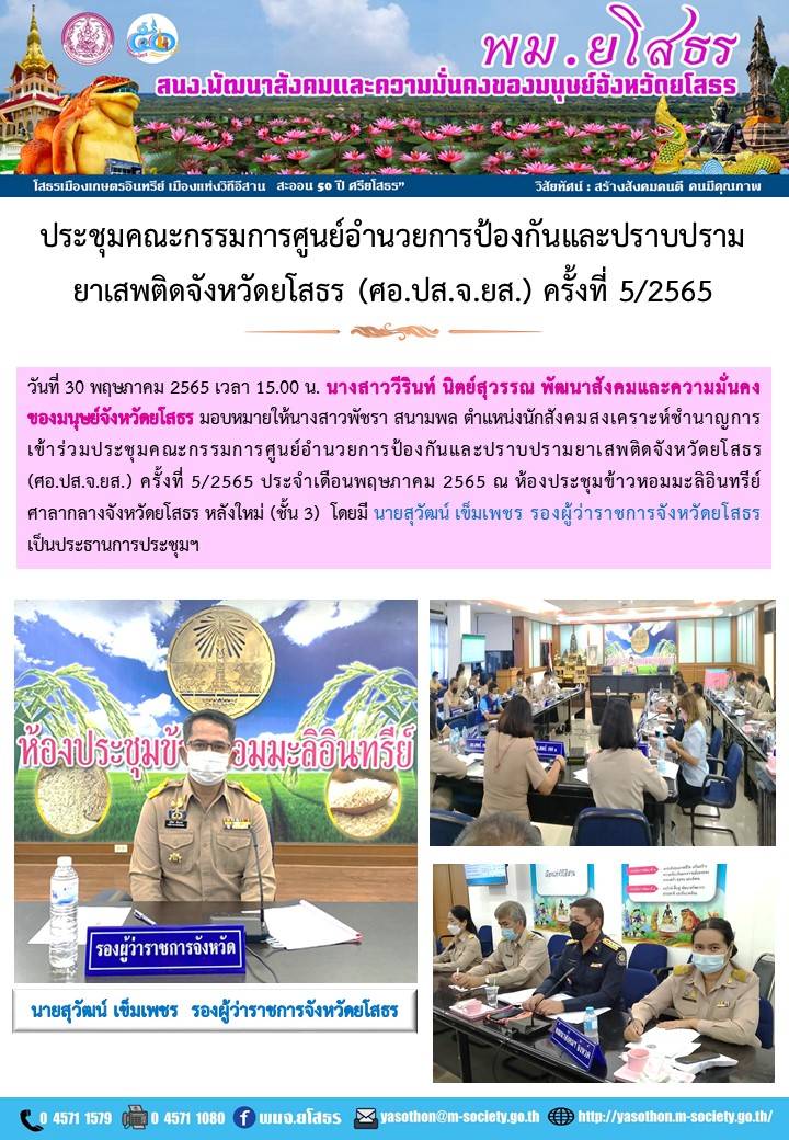 ประชุมคณะกรรมการศูนย์อำนวยการป้องกันและปราบปรามยาเสพติดจังหวัดยโสธร (ศอ.ปส.จ.ยส.) ครั้งที่ 5/2565 (30 พฤษภาคม 2565)