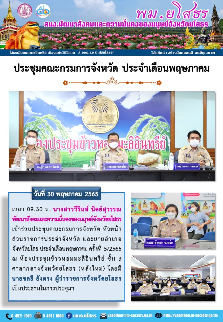 ประชุมคณะกรมการจังหวัด ประจำเดือนพฤษภาคม (30 พฤษภาคม 2565)