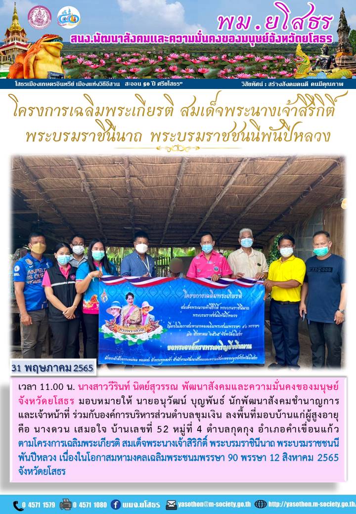 โครงการเฉลิมพระเกียรติ สมเด็จพระนางเจ้าสิริกิติ์ พระบรมราชินีนาถ พระบรมราชชนนีพันปีหลวง (มอบบ้าน 5/12) (31 พฤษภาคม 2565)