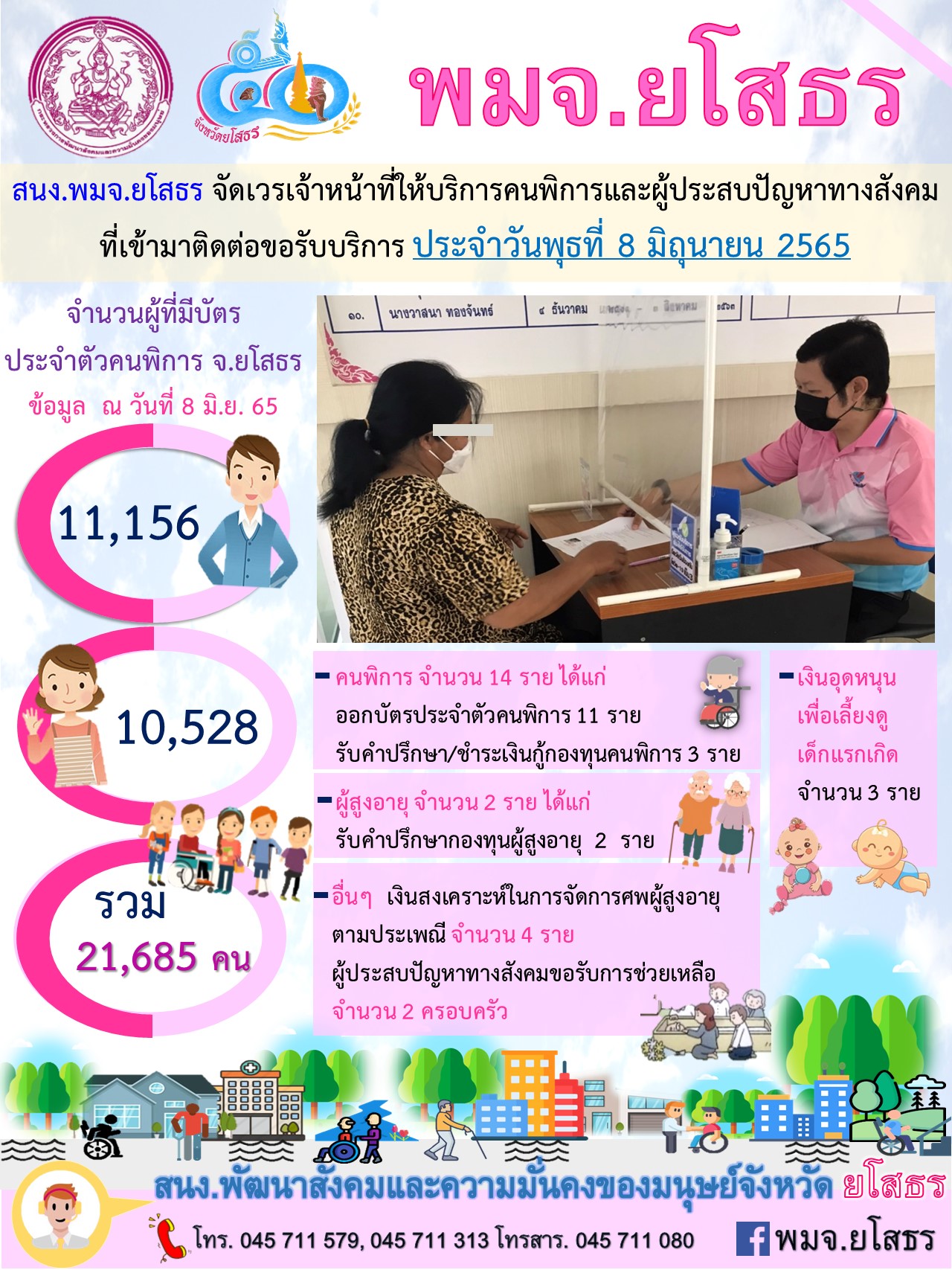 สนง.พมจ.ยโสธร จัดเวรเจ้าหน้าที่ให้บริการคนพิการและผู้ประสบปัญหาทางสังคม ที่เข้ามาติดต่อขอรับบริการ (8 มิถุนายน 2565)