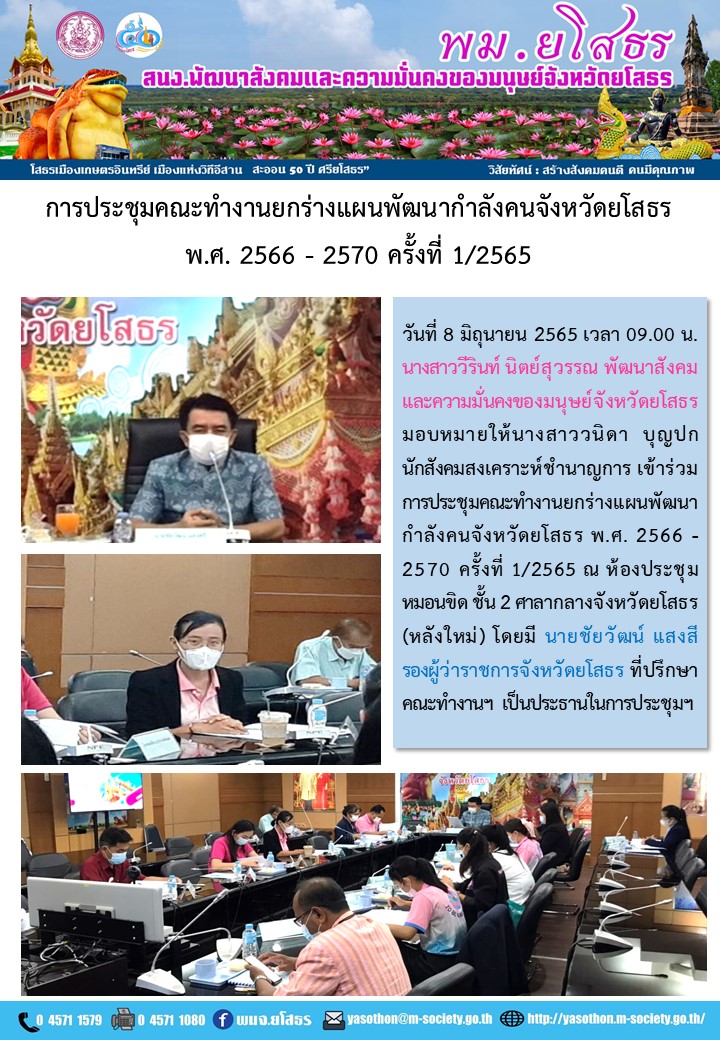 การประชุมคณะทำงานยกร่างพัฒนากำลังคนจังหวัดยโสธร พ.ศ. 2566-2570 ครั้งที่ 1/2565 (8 มิถุนายน 2565)