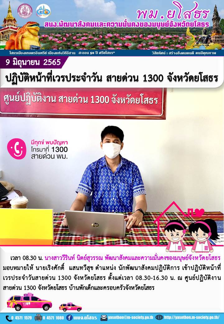 ปฏิบัติหน้าที่เวรประจำวันสายด่วน 1300 จังหวัดยโสธร (9 มิถุนายน 2565)