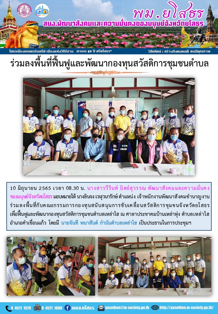ร่วมลงพื้นที่ฟื้นฟูและพัฒนากองทุนสวัสดิการชุมชนตำบล ตำบลเหล่าไฮ อำเภอคำเขื่อนแก้ว (10 มิถุนายน 2565)