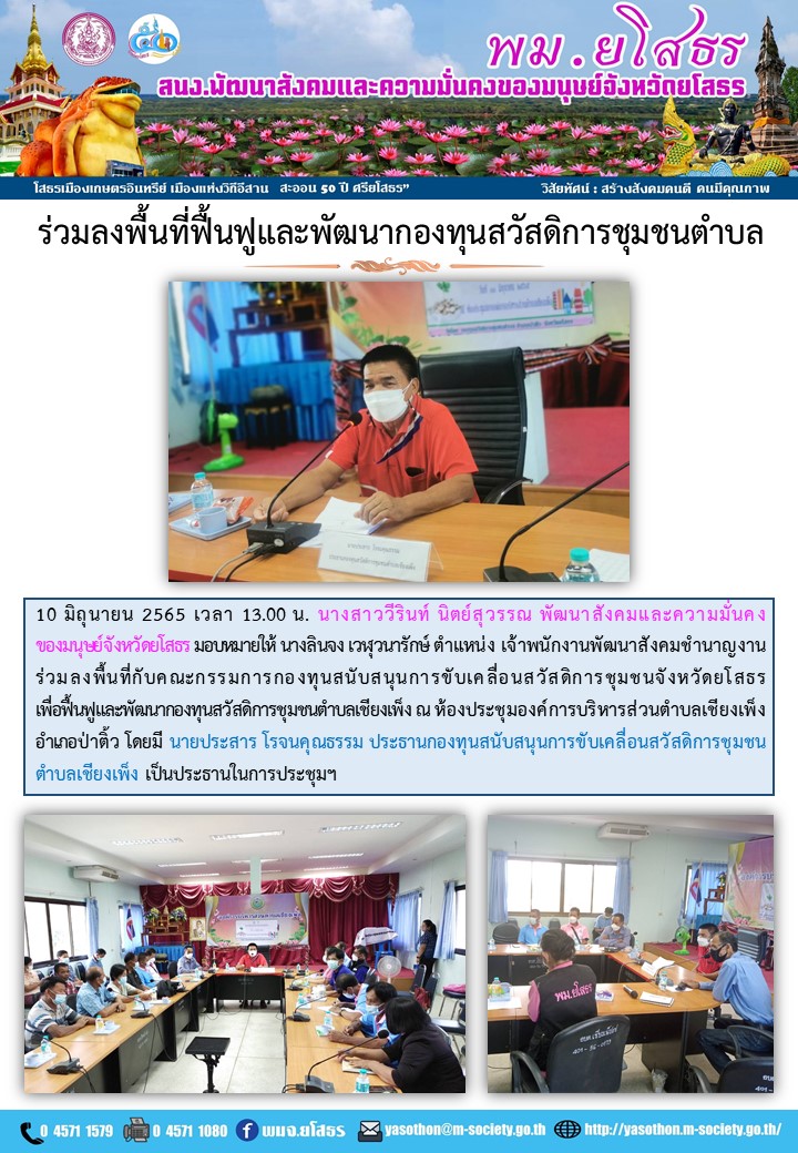 ร่วมลงพื้นที่ฟื้นฟูและพัฒนากองทุนสวัสดิการชุมชนตำบล ตำบลเชียงเพ็ง อำเภอป่าติ้ว (10 มิถุนายน 2565)