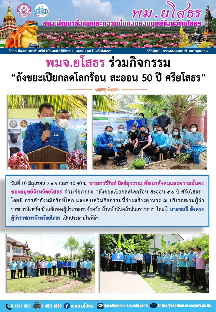 พมจ.ยโสธร ร่วมกิจกรรม “ถังขยะเปียกลดโลกร้อน สะออน ๕๐ ปี ศรียโสธร” (10 มิถุนายน 2565)