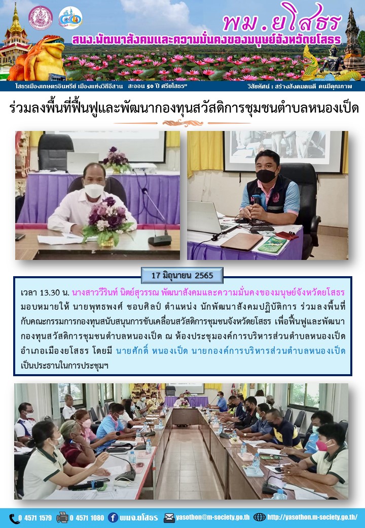 ร่วมลงพื้นที่ฟื้นฟูและพัฒนากองทุนสวัสดิการชุมชน ตำบลหนองเป็ด อำเภอเมืองยโสธร (17 มิถุนายน 2565)