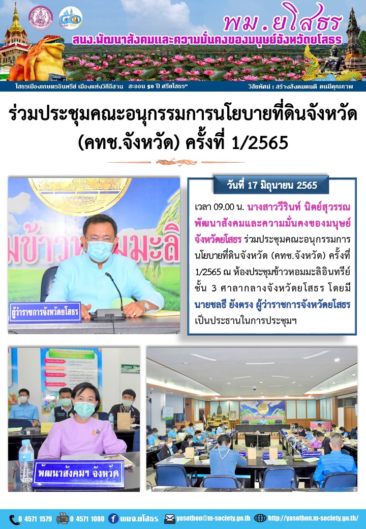ร่วมประชุมคณะอนุกรรมการ นโยบายที่ดินจังหวัด (คทช.จังหวัด) ครั้งที่ 1/2565 (17 มิถุนายน 2565)