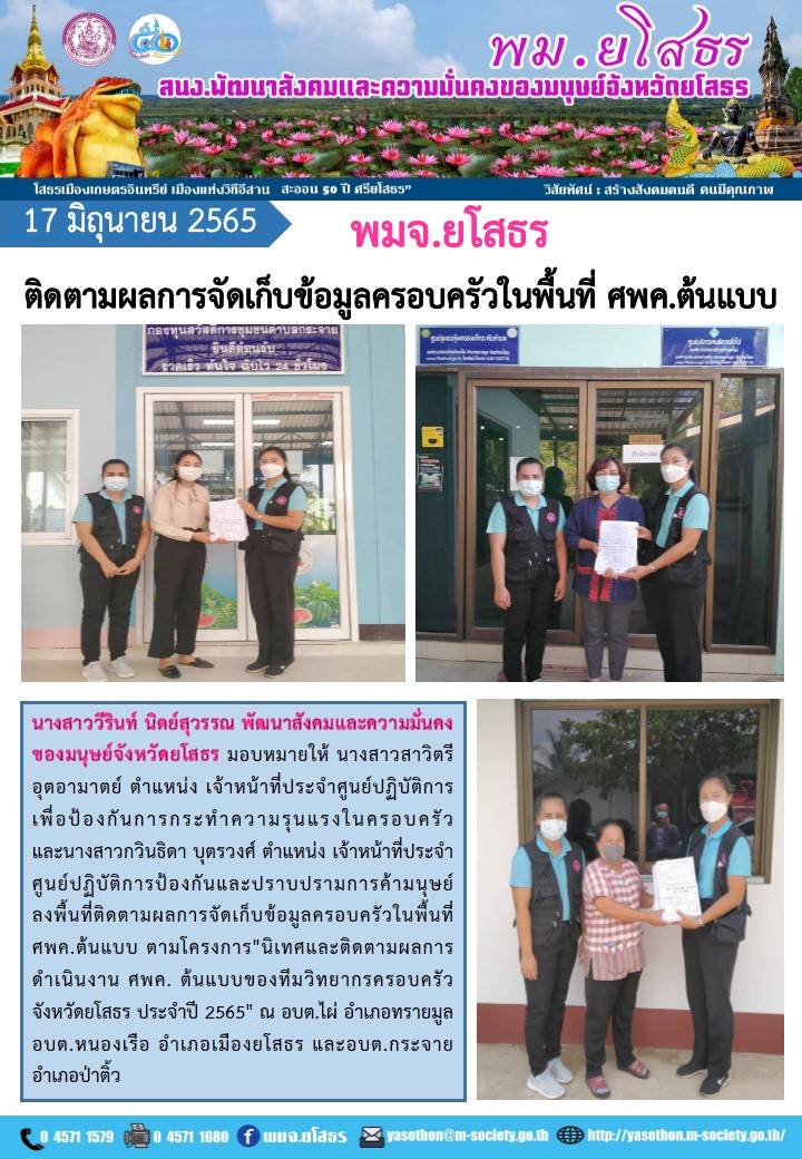 พมจ.ยโสธร ติดตามผลการจัดเก็บข้อมูลครอบครัวในพื้นที่ ศพค.ต้นแบบ (17 มิถุนายน 2565)