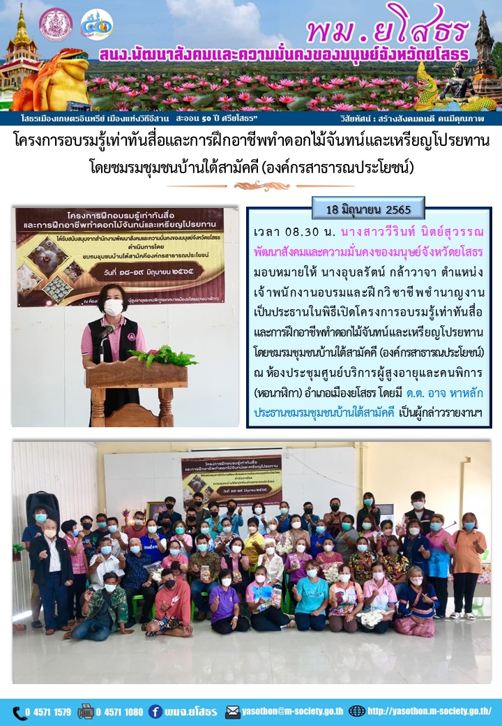 โครงการอบรมรู้เท่าทันสื่อและการฝึกอาชีพทำดอกไม้จันทน์และเหรียญโปรยทาน โดยชมรมชุมชนบ้านใต้สามัคคี (องค์กรสาธารณประโยชน์) (18 มิถุนายน 2565)