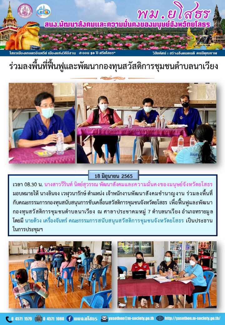 ร่วมลงพื้นที่ฟื้นฟูและพัฒนากองทุนสวัสดิการชุมชน ตำบลนาเวียง อำเภอทรายมูล (18 มิถุนายน 2565)