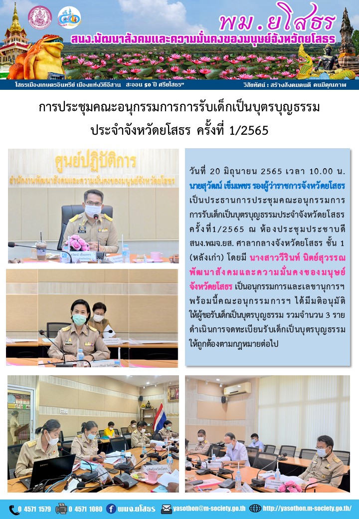 ประชุมคณะอนุกรรมการการรับเด็กเป็นบุตรบุญธรรมประจำจังหวัดยโสธร ครั้งที่1/2565 (20 มิถุนายน 2565)