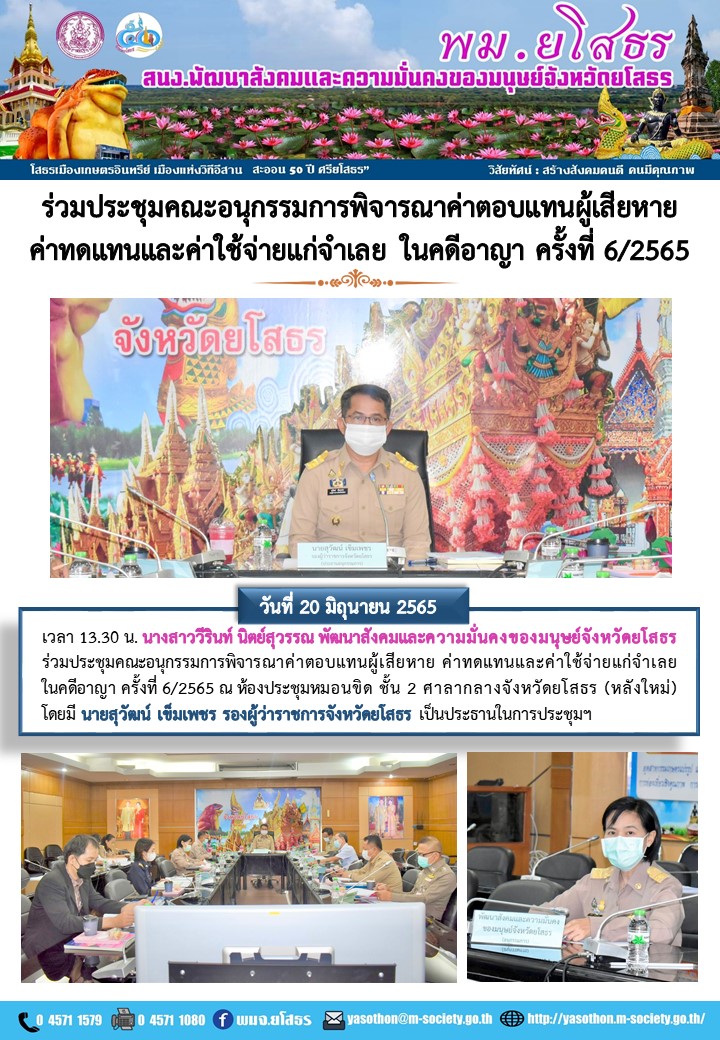 ร่วมประชุมคณะอนุกรรมการพิจารณาค่าตอบแทนผู้เสียหาย ค่าทดแทนและค่าใช้จ่ายแก่จำเลยในคดีอาญา ครั้งที่ 6/2565 (20 มิถุนายน 2565)