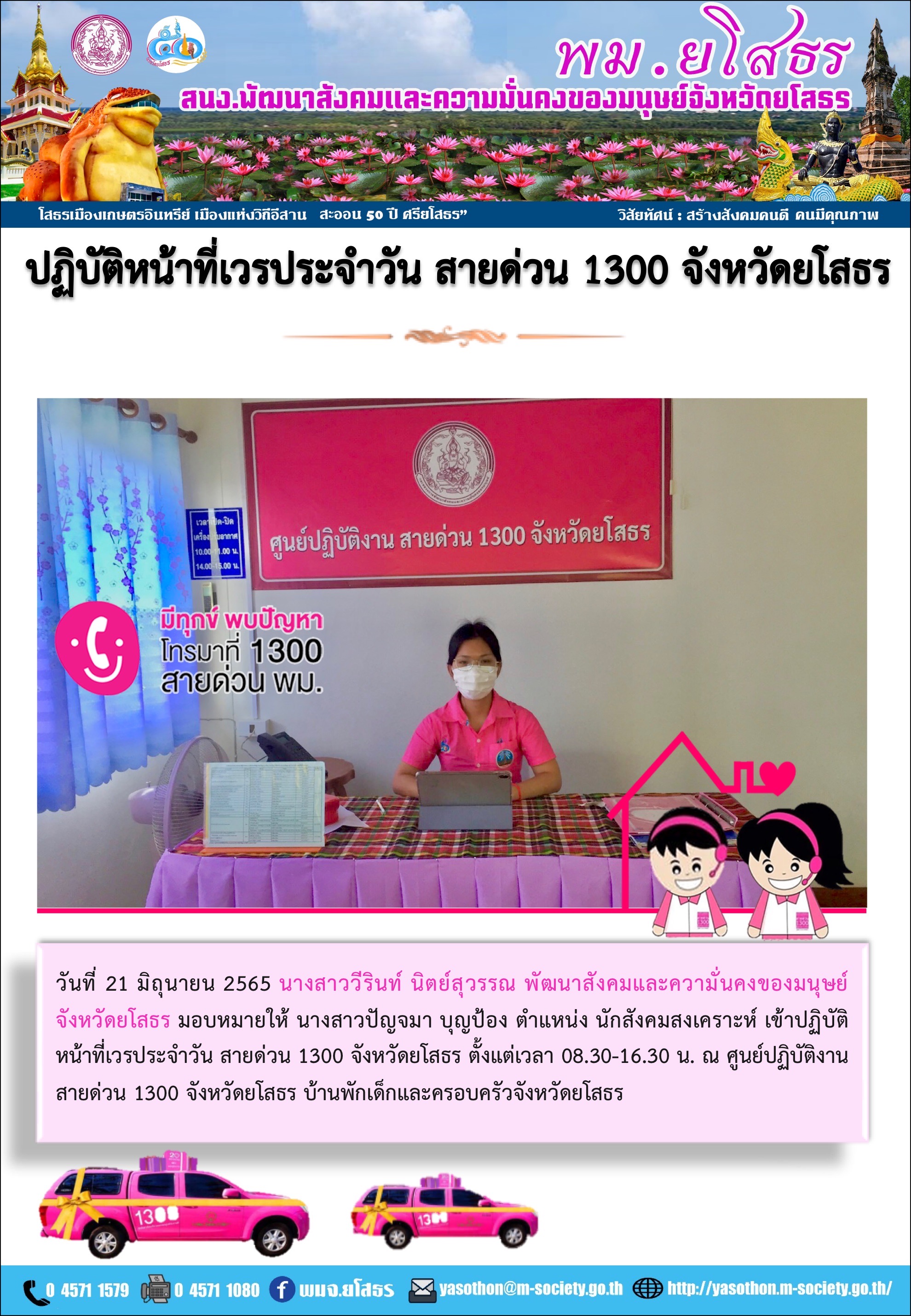 ปฏิบัติหน้าที่เวรประจำวันสายด่วน 1300 จังหวัดยโสธร (21 มิถุนายน 2565)