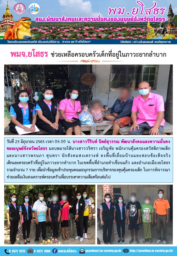พมจ.ยโสธร ช่วยเหลือครอบครัวเด็กที่อยู่ในภาวะยากลำบาก (23 มิถุนายน 2565)